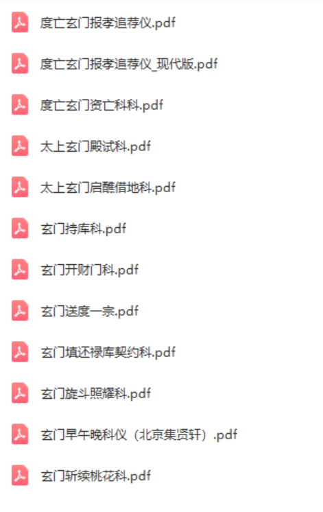 玄门科仪(12本)pdf,都是一些道门使用的科仪。包含启醮借地科,殿试科,报孝追荐仪,资亡科,还禄库契约科,开财门科,持库科,斩续桃花科,旋斗照耀科,早午晚科仪,送度一宗等内容。
