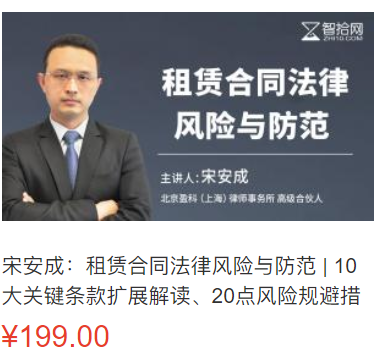 【法律上新完结】【智拾】《宋安成:租赁合同法律风险与防范》10大关键条款扩展解读、20点风险规避措施盘点、完备签约流程操作指引