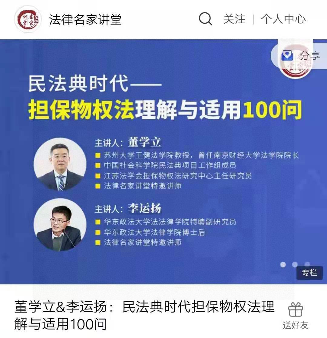 【法律补文档】【法律名家】《董学立&李运扬:民法典时代担保物权法理解与适用100问》 100问!结合理论与实践,助大家快速掌握担保物权应知应会的法律知识 ●法律会员免费●路径/03/2021/272