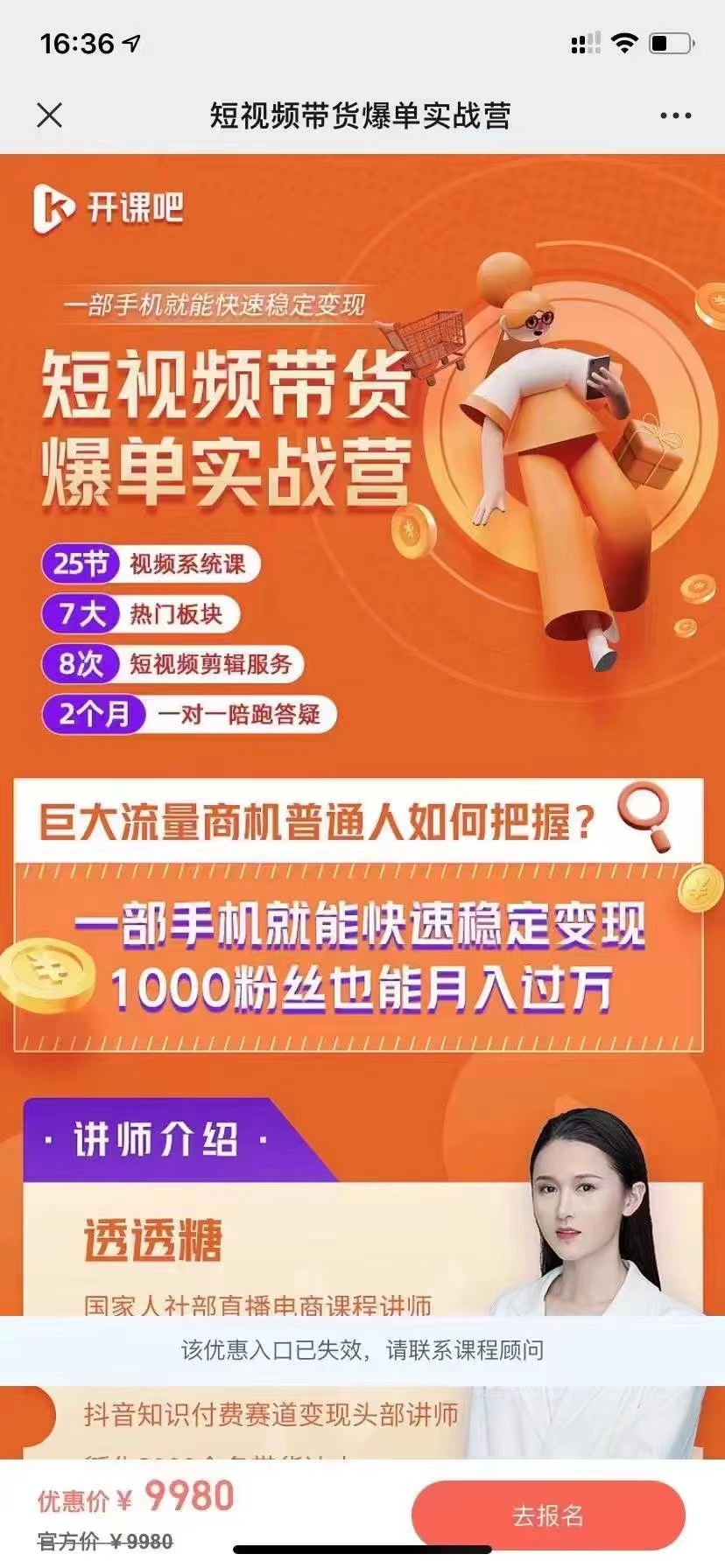 【网赚上新】【2022开课吧透透糖:短视频带货爆单实战营】