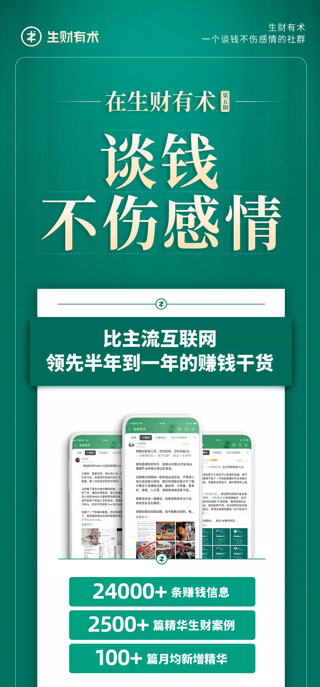 生财有术的信息新鲜度,可能比主流互联网领先半年到一年,抓住一个机会的话,也能赚不少。