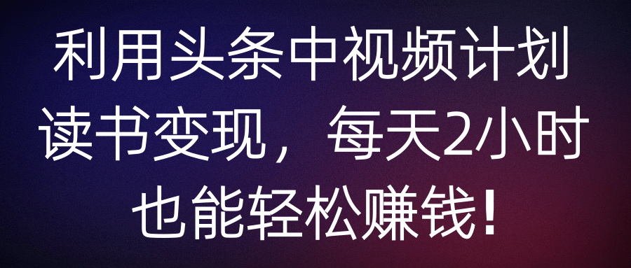 【网赚上新】【利用头条中视频计划读书变现,每天2小时也能轻松赚钱!】