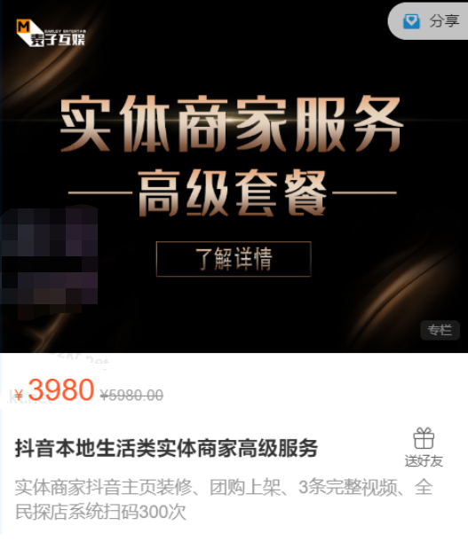 【网赚上新】《麦子互娱抖音本地生活类实体商家高级服务》