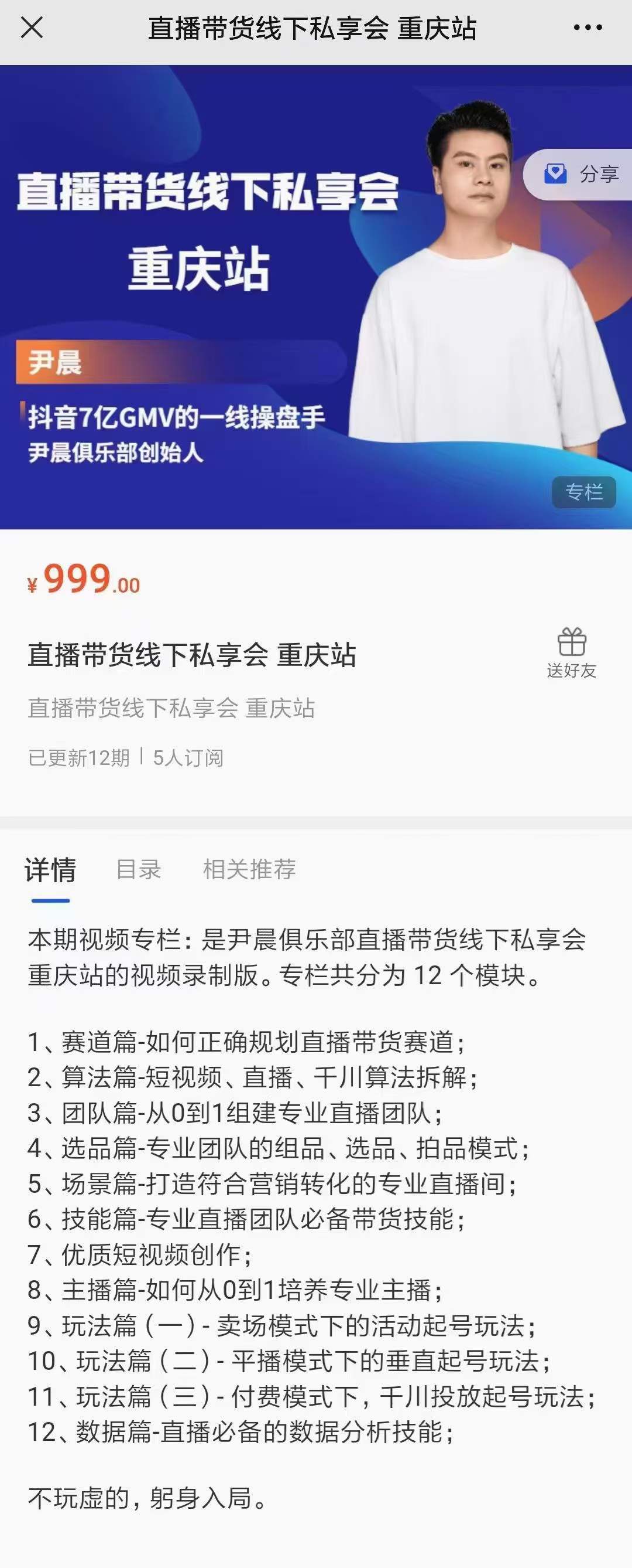 【999[红包]·《尹晨·直播带货线下课》】