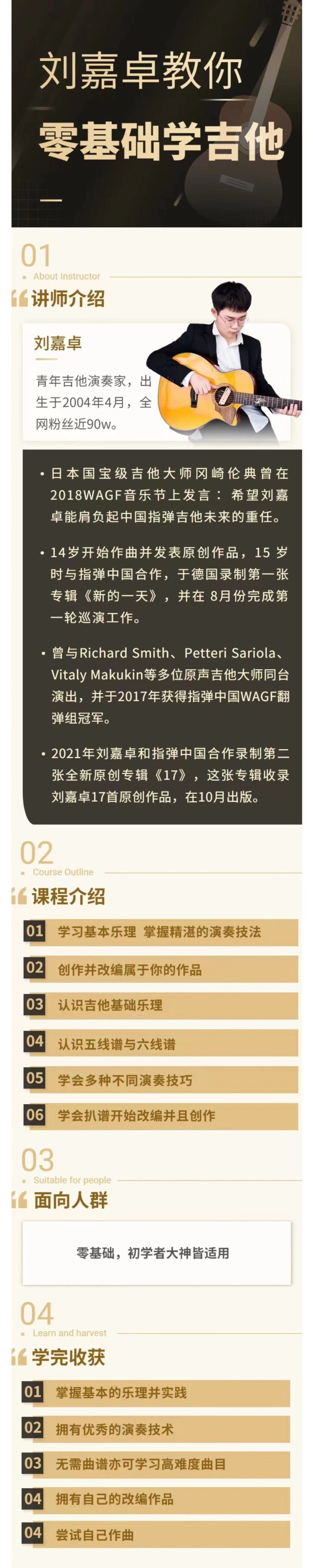 原价599《抖音易知课堂-【刘嘉卓】初阶指弹吉他课程》