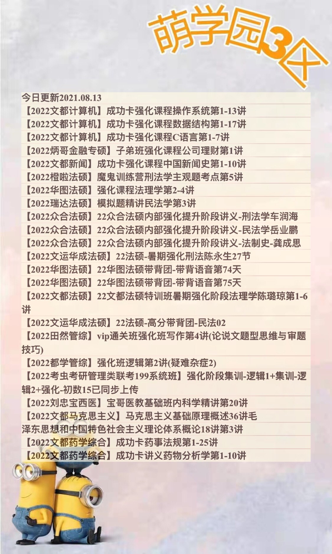 萌学园三区?「8.13更新」?考研专业课路径萌三资料3/考研类/2022考研/2022考研专业课?2022考研公共课路径:/萌三资料3/考研/2022考研/2022考研公开课?语言类路径:/萌三资料2/语言类/