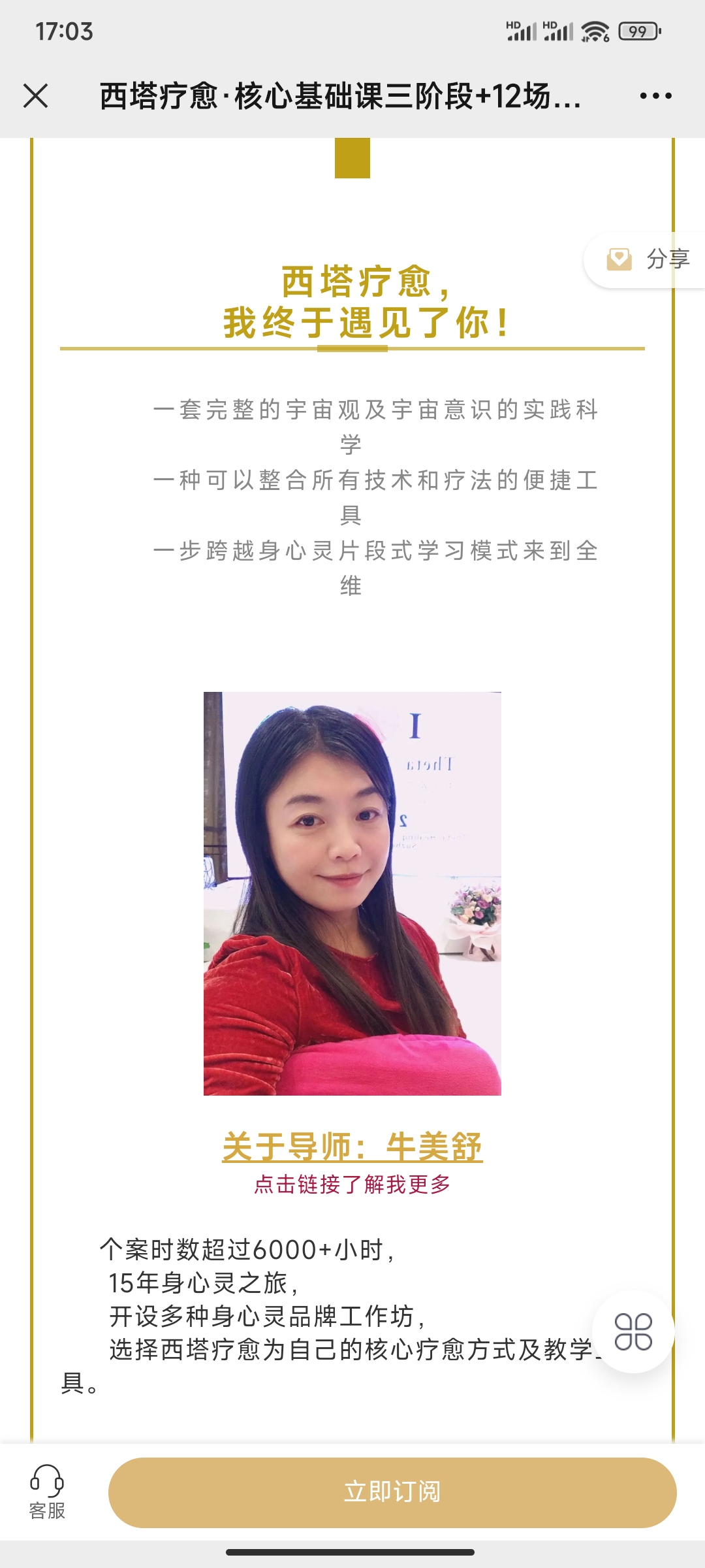 499?牛美舒《西塔疗愈·核心基础课三阶段+12场主题练习会》